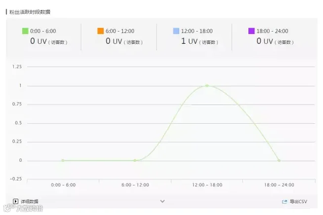 粉丝活跃时段数据:粉丝平均每天各个时段的访问情况,清楚的把握粉丝的活跃时段。