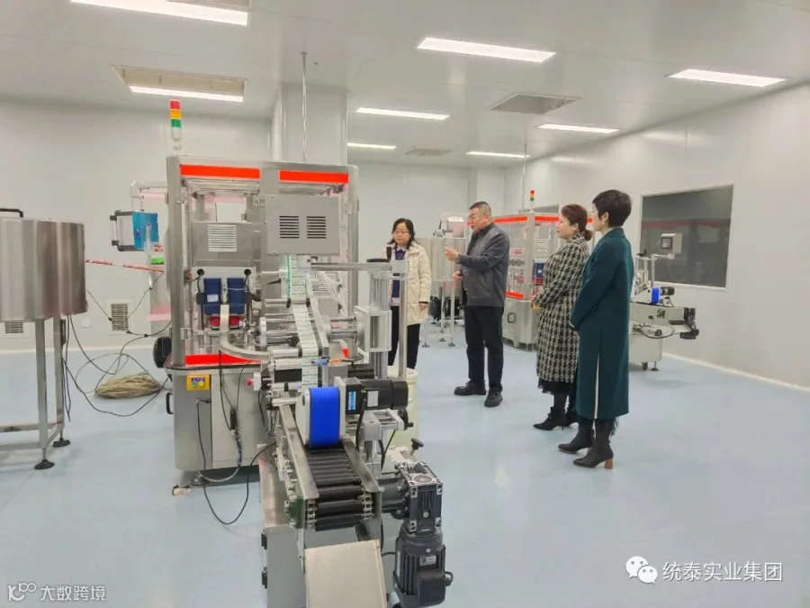 2022年11月3日一大早,统泰实业集团董事长杨棣、集团商业板块总裁张艳、集团工业板块总裁曲艳梅、集团行政板块总裁钟云香及集团财务副总监杨俊峰,医药健康产业园相关领导班子成员一起视察了在均泰东方医药健康产业园内的东方科技公司项目建设情况,一行人依次参观了注塑车间、配制车间、灌装车间、植绒车间、包装车间及公共动力设施系统等。