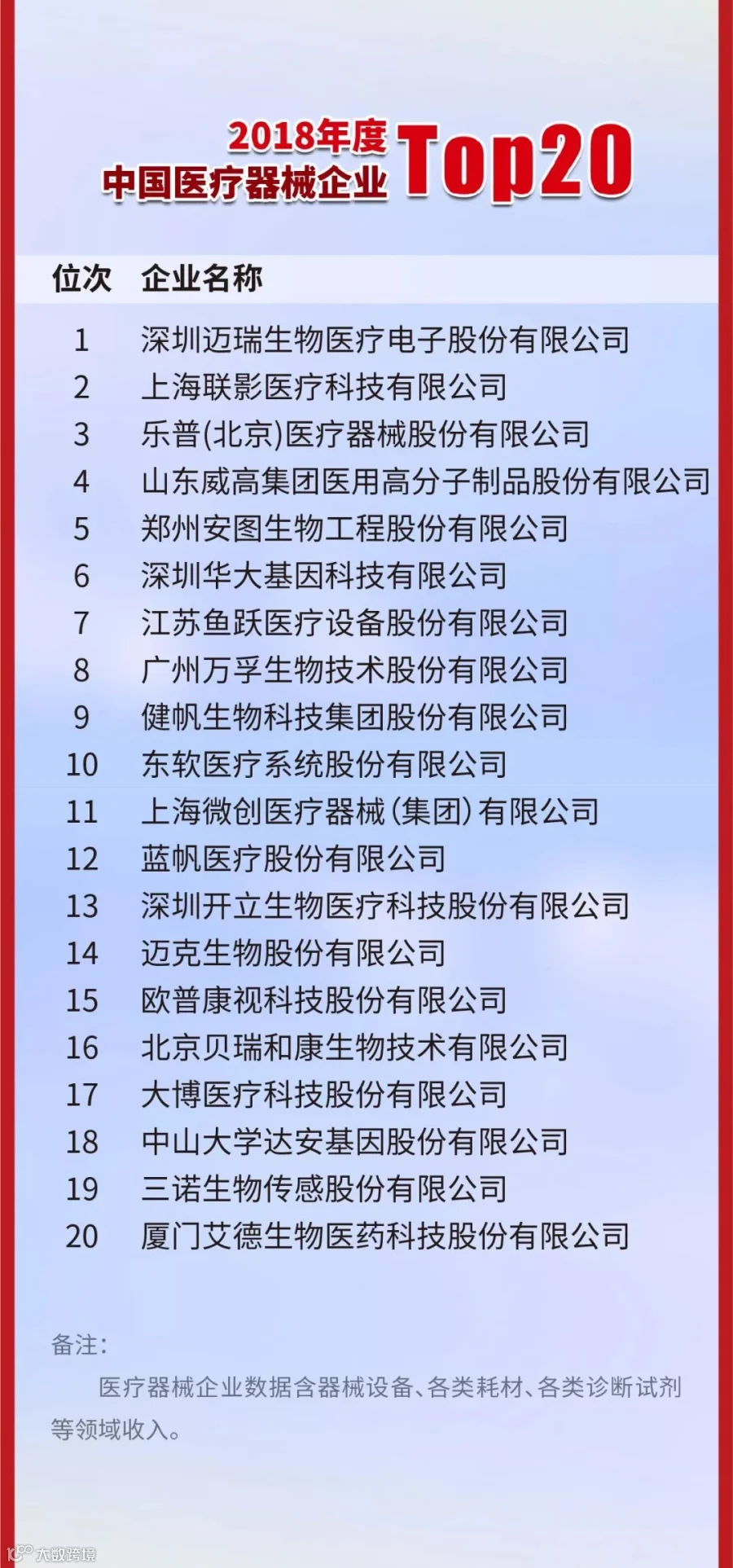 【统泰数据】·中国医疗器械公司排名