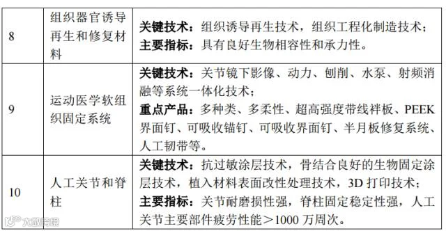 以下几个医疗器械子领域则被纳入了《实施方案》的扶持计划: