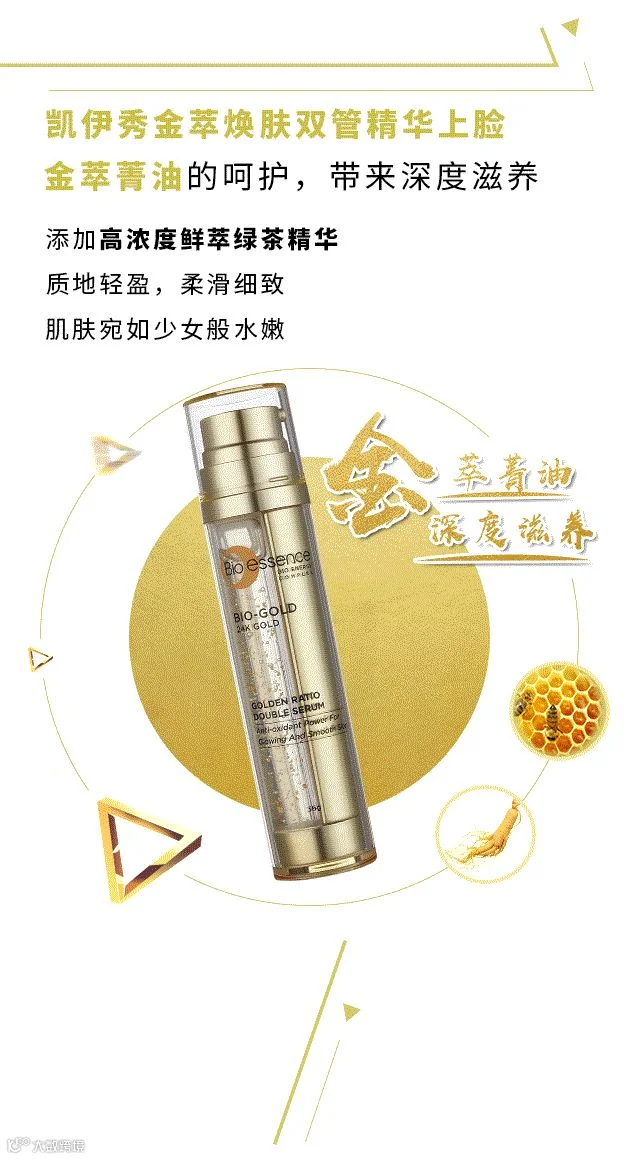 导读:凯伊秀金萃焕肤双管精华,为你赋活肌润鎏金光彩!