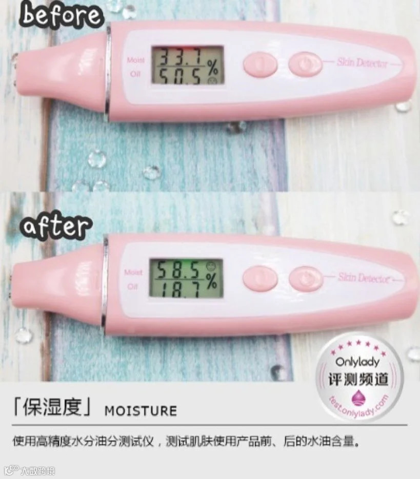 小编肌肤的初始水分值为33.7%,油分值为50.5%,
