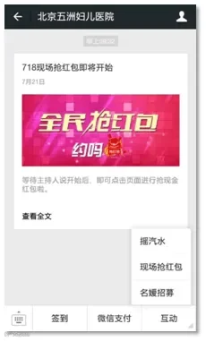 小编点评:五洲医院利用点点客现金红包设定限时整点抢,先到先得,增强用户黏性。同时利用“院庆”特殊的节日效应提升用户关注度。
