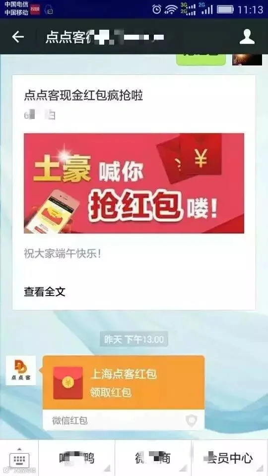 端午节当天晚上8点,回复“红包”,点击红包图文即可领取。