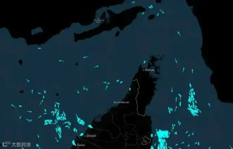 霍尔木兹海峡船舶 AIS 分布图。