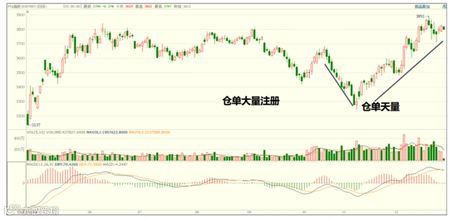 譬如2020年底,PTA的库存持续上升,但是价格也持续上涨。因为大量的现货通过注册仓单锁住了流动性,结果库存上升,现货反而比较紧张的现象出现了。
