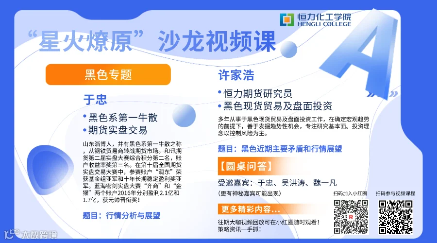 在这里,还有嘉宾讲师不定期进行培训授课,丰富您的知识体系与方法,内容包括商品期货、贸易知识体系框架、套期保值风险管理、期权组合策略、技术面判断方法等等。