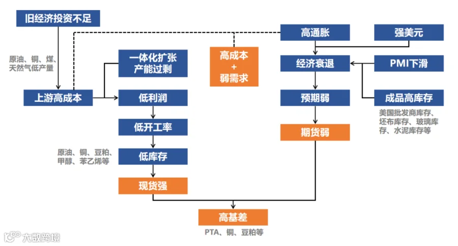 2022年商品的在低利润、低开工率、低库存下,现货与期货同跌中,基差走强,这样的现象仍然在持续。