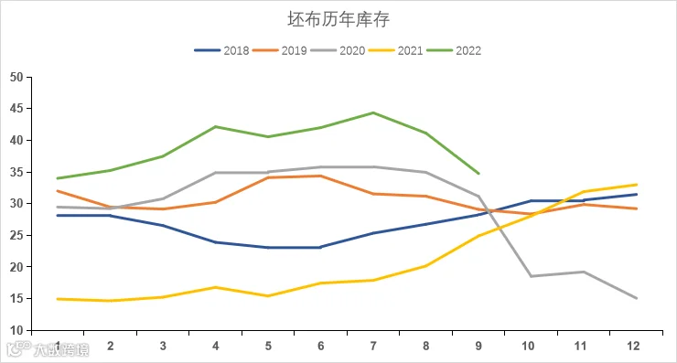 因此,它能够反应需求端的状态,2020年都没有如此高的坯布库存,可见2022年的需求端压力水准。