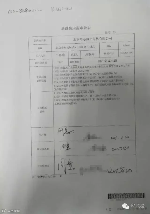 2016年5月16日,收到关于中国航天科工集团第四研究院(中国航天三江集团公司)正式将北京华芯微半导体有限公司纳入合格供应商的通知。