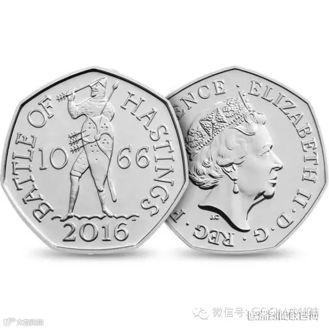 与彼得兔同时发行的50p硬币还有另外一个,以纪念1066年黑斯廷斯战役和诺曼人征服英格兰950周年。