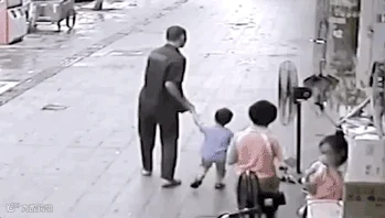 一位爸爸带着孩子在路上走——突然从他身后,跑过来一个陌生女人,伸手就要把孩子抱走。这位父亲立刻警惕起来,断定这个人是抢孩子的人贩子。