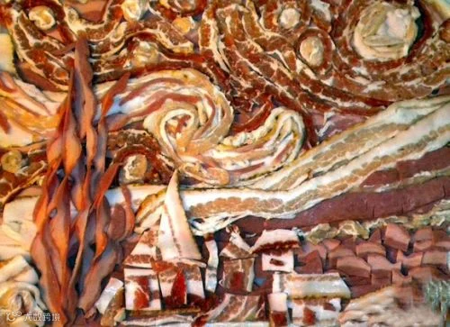 来自美国佛州的Emily Ardella 使用家里的培根肉重新复原了梵高的名画,只花费了3个小时的时间。