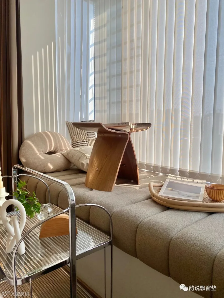 这高级又耐脏的颜色不香吗?一分钱一分货!实木框架+高密度海绵的质感确实很好!我的飘窗形状有点复杂,属于异形飘窗,但是定制的尺寸刚刚好。