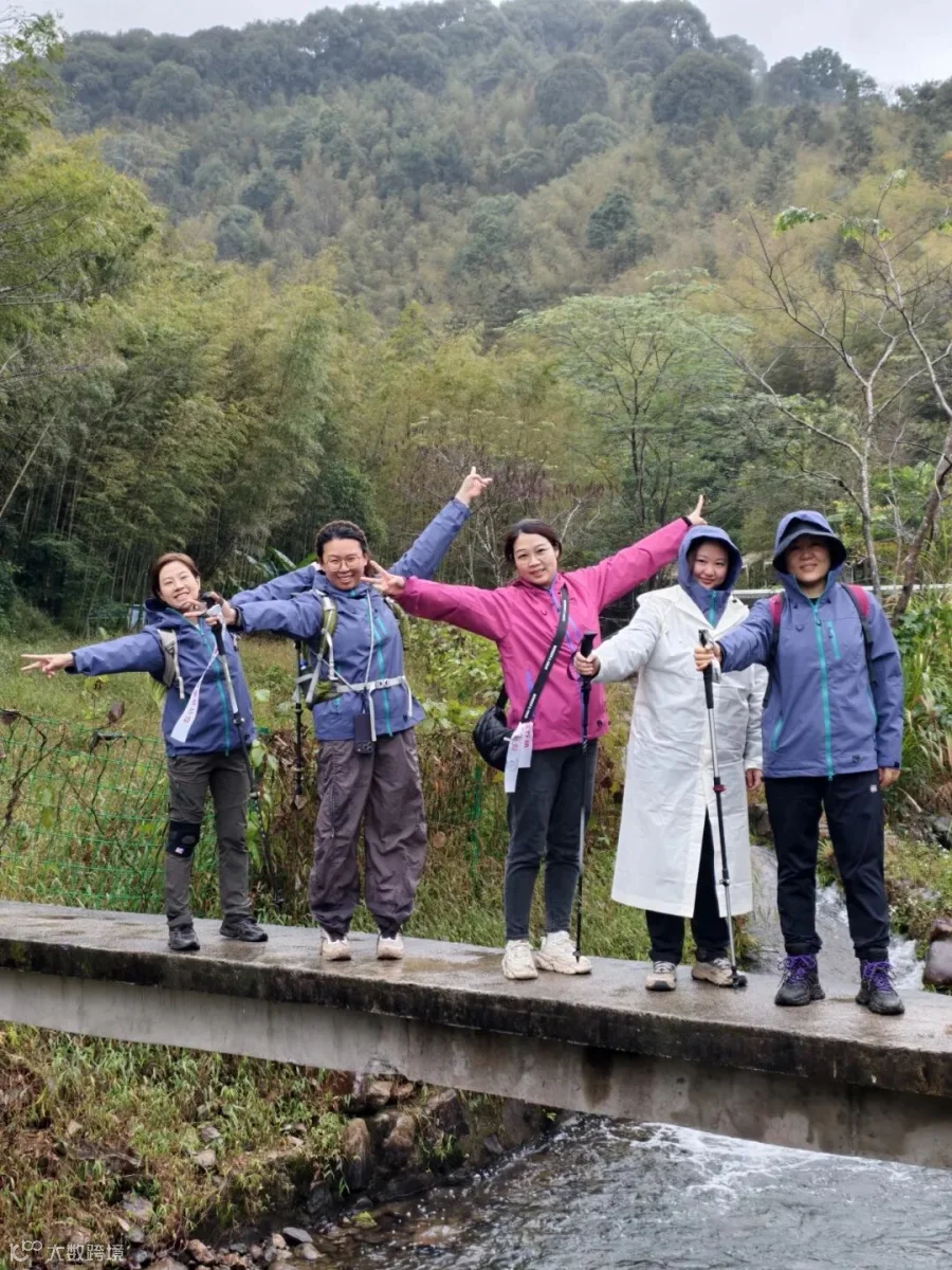 上午10时许,随着领队指令下达,大家身着各色雨衣踏上泥泞山路。“小心脚下!”“我有温水,谁需要?”队伍中互助声不断,同事间有的等候体力稍弱的伙伴,有的主动分担行囊,雨衣下的身影交织成雨雾中最暖的风景。