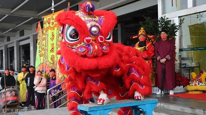 醒狮分别在公司的4个工作点进行表演,寓意把喜气福气遍布公司每一个角落,把好彩头分享给每一位物流人。