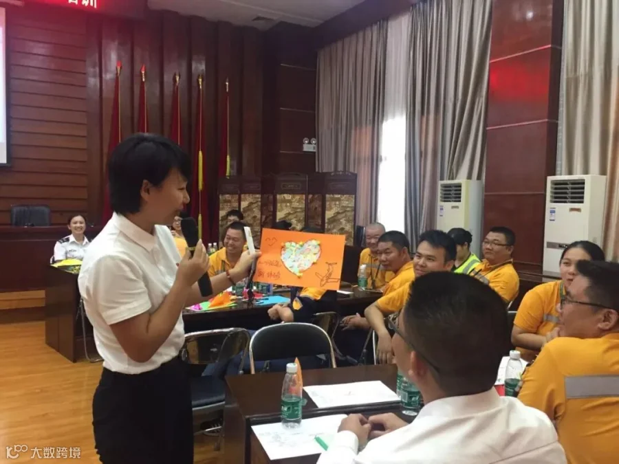 培训现场,以“分组竞赛”方式展开,中间穿插询问、答辩和游戏等,在互动环节,胡老师引导学员们以绘画、折纸等形式诠释对服务文化的理解,以“情景剧”演示真实案例,让学员们亲身感受“春风服务”内涵等。不仅增强了学员们的参与性和积极性,也加深了相互间的了解与沟通。