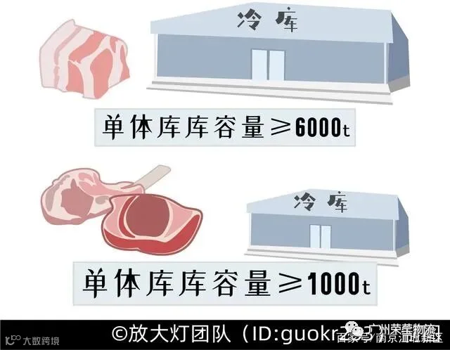 这些储备肉会分散在符合条件的承储企业冷库中,商务部曾在2018年7月和2019年1月按《中央储备肉冻肉储存冷库资质条件》分别建立了中央储备冻猪、牛羊肉承储企业的备选名录库。《资质条件》对承储冷库提出了规模要求: