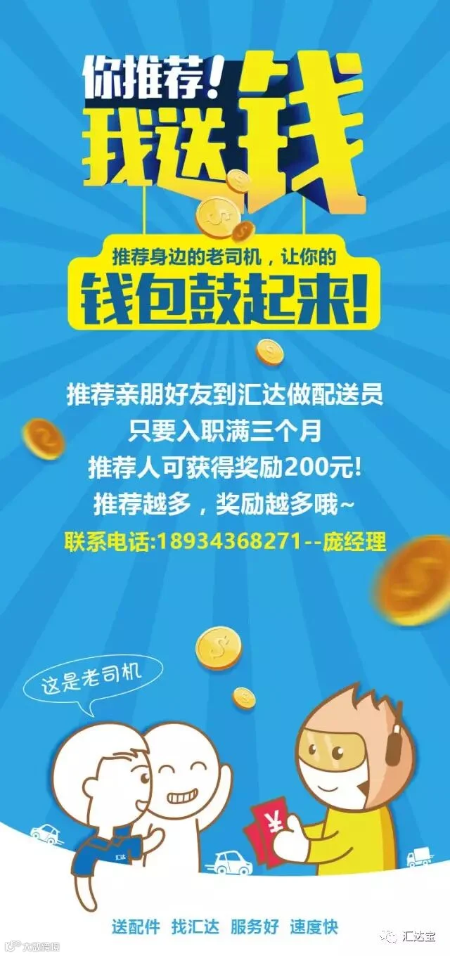推荐亲朋好友到汇达做配送员