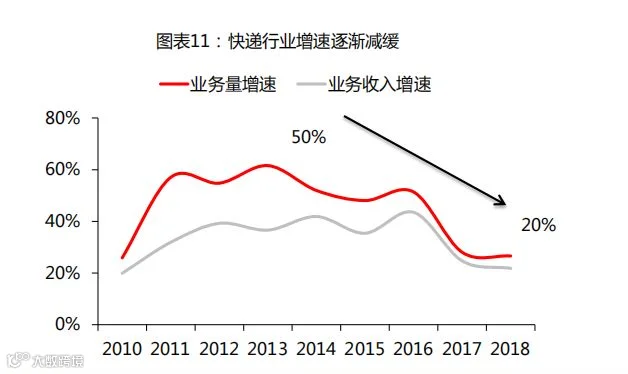 快递行业增速逐步减缓,稳定在20%左右。虽说拼多多成为下一个高速增长货源,但年500亿件如此大的基数,再难实现11-15年50%以上高增速。▪ 虽说头部快递公司仍可以通过整合二三线快递市场获得高过市场的增速,但长远之计还是找快递的后下一个增长极;
