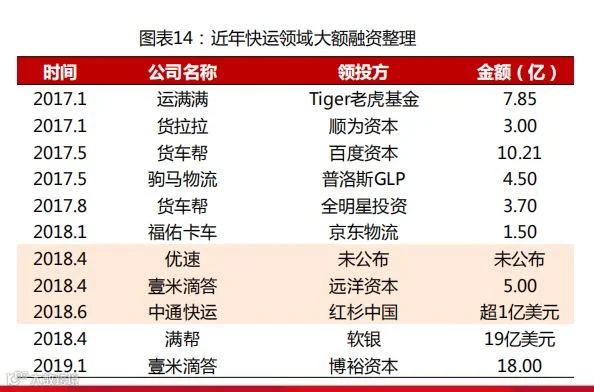 3.资金充沛,目前自有资金充足度和融资难度都比曾经的快递行业好很多。