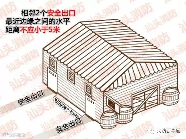 仓库的安全出口应分散布置。每个防火分区或一个防火分区的每个楼层,其相邻2个安全出口最近边缘之间的水平距离不应小于5米。