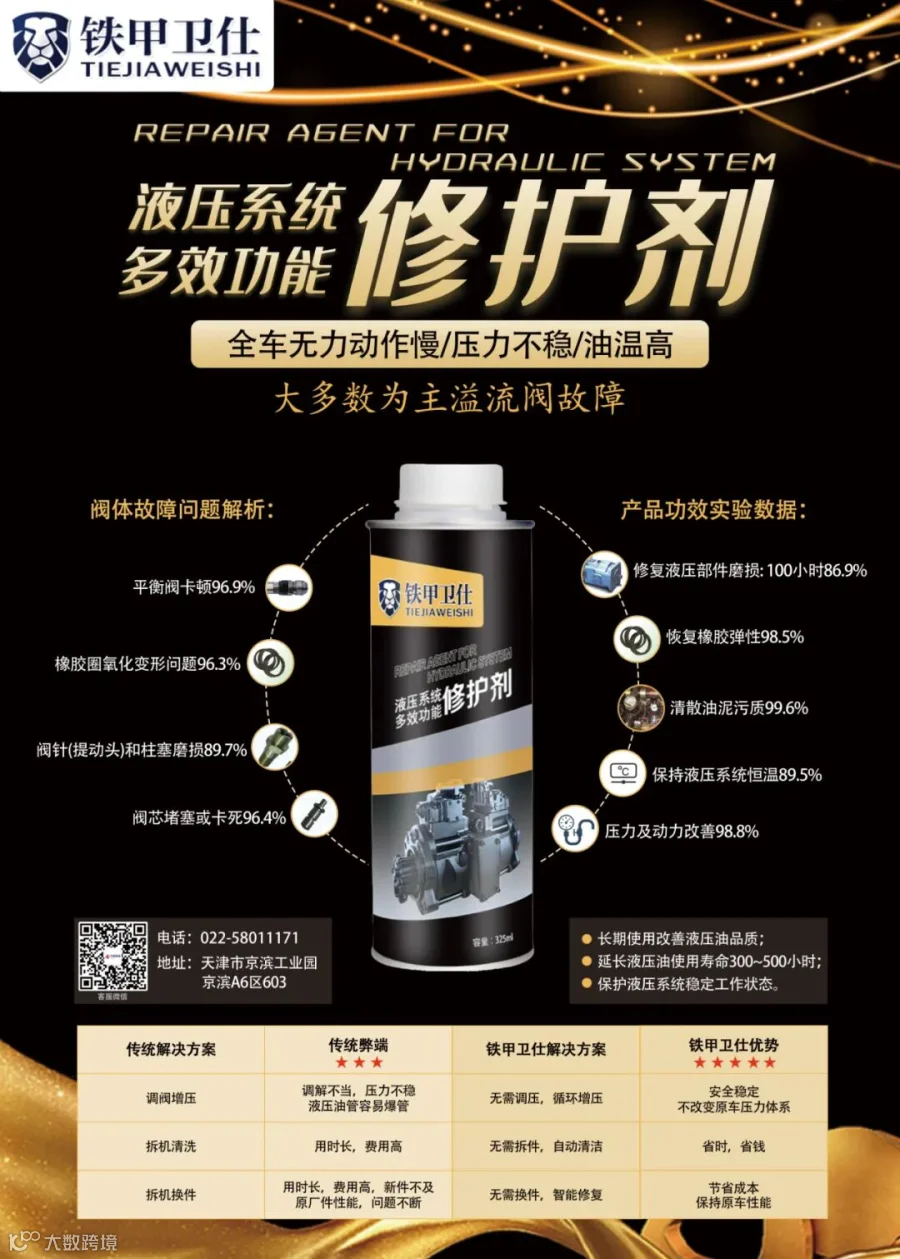 通过了上百次的实车试验,越来越多的机主选择了“铁甲卫仕液压系统多效功能修护剂”来解决液压故障。我们秉持着为机主负责的态度,帮助机主提升液压设备性能,降低维修保养成本。