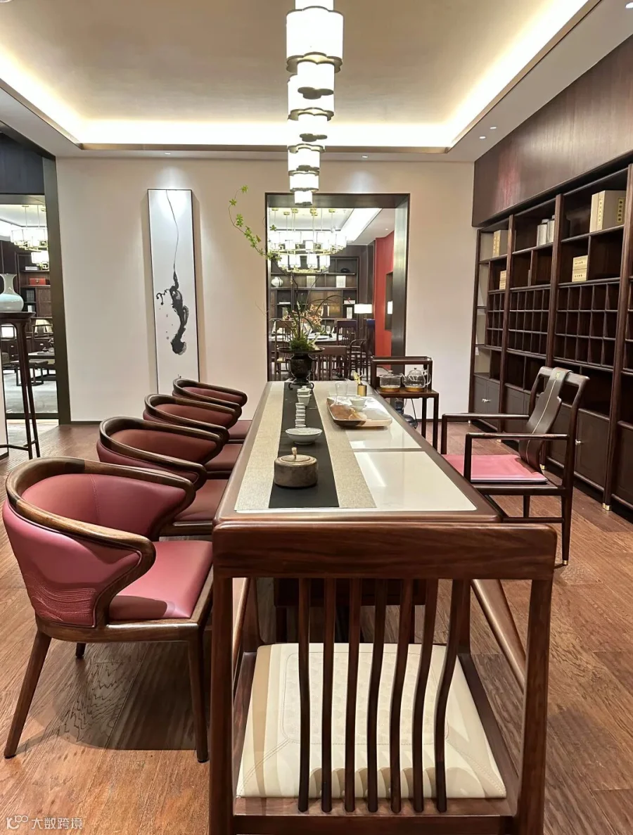 茶椅侧面通过刺绣融合绵延水纹元素,