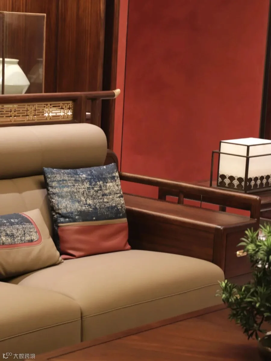 真皮实木沙发搭配褐色实木茶几,可谓相得益彰!