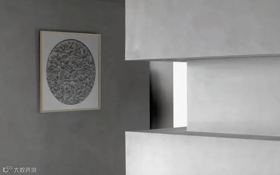 这一展厅理念源自业主公司主营业务的启发:「贸易是一种易物的过程,其中伴随并最终形成文化的传播和呈现。」故此,空间以美术馆中五个独立的混凝土展厅体块为原型,被隐藏入口的体块形成馀白空间,点以长凳和艺术品展台,混凝土表皮的「可塑性」让展厅空间更具「场景化」,仿佛置身真实的美术馆,人是空间的「主角」。