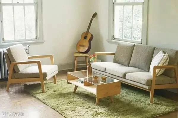 5、移动块毯 割裂整体空间不固定区域的块毯是人们犯的一个大错误,因为它们使视线转移从而割裂了空间的统一感,并且走在上面人很容易摔倒。在买块毯前先在地板上用尺量出要放置块毯的位置。块毯应该和沙发组连接在一起。把所有坐具的前脚都放在块毯上。