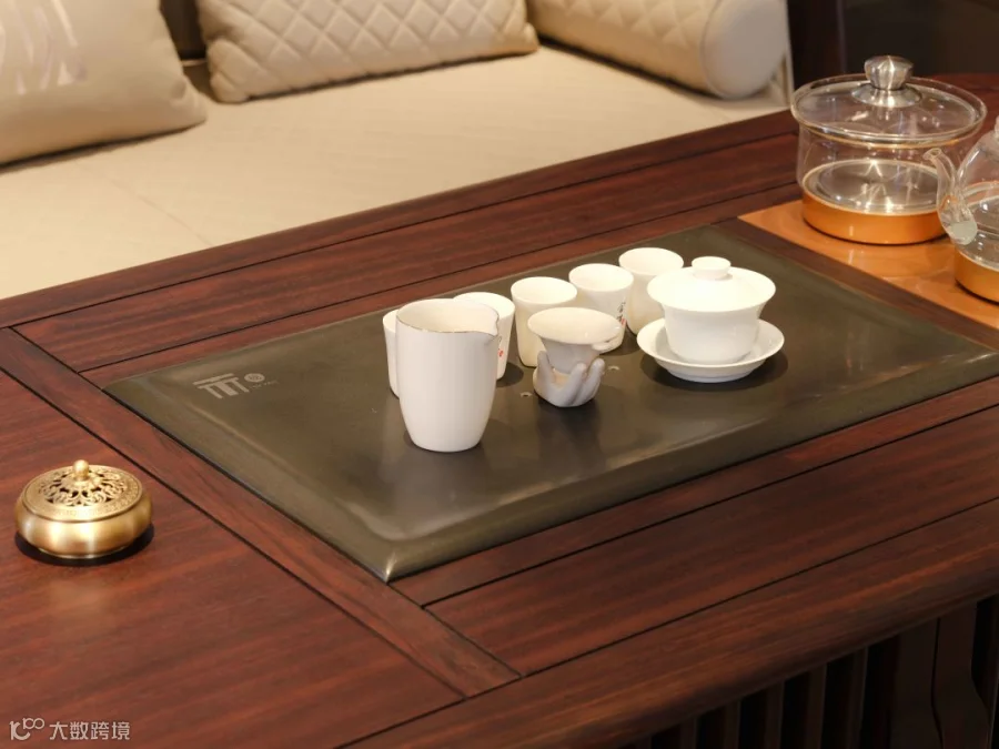 1.7米长的茶几内置乌金石茶盘和金灶自动上水电磁炉,桌柜一体结构让茶具收纳更加便捷隐蔽。既可以充当茶几,又可以充当茶台,真正做到了一桌两用。从此彻底摆脱空间杂乱。