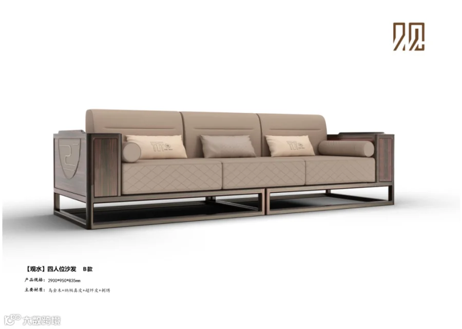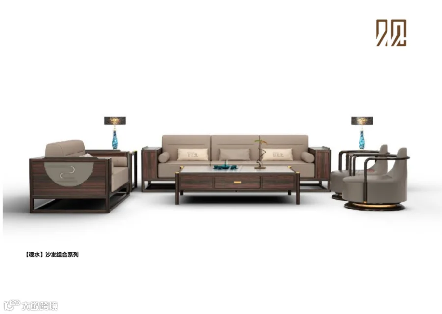 综观整套沙发组合,与班台气质一致,大气磅礴,整体空间沉稳中带有灵动,与水的本质如出一辙。