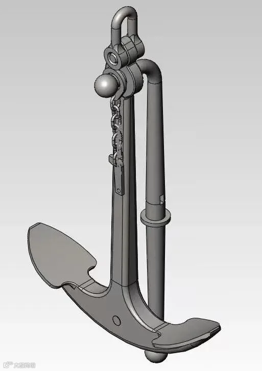 有杆锚又称海军锚,是早期常见的锚型。其结构特点是锚爪和锚干通常为一整体,并有一垂直于锚爪平面的横杆。