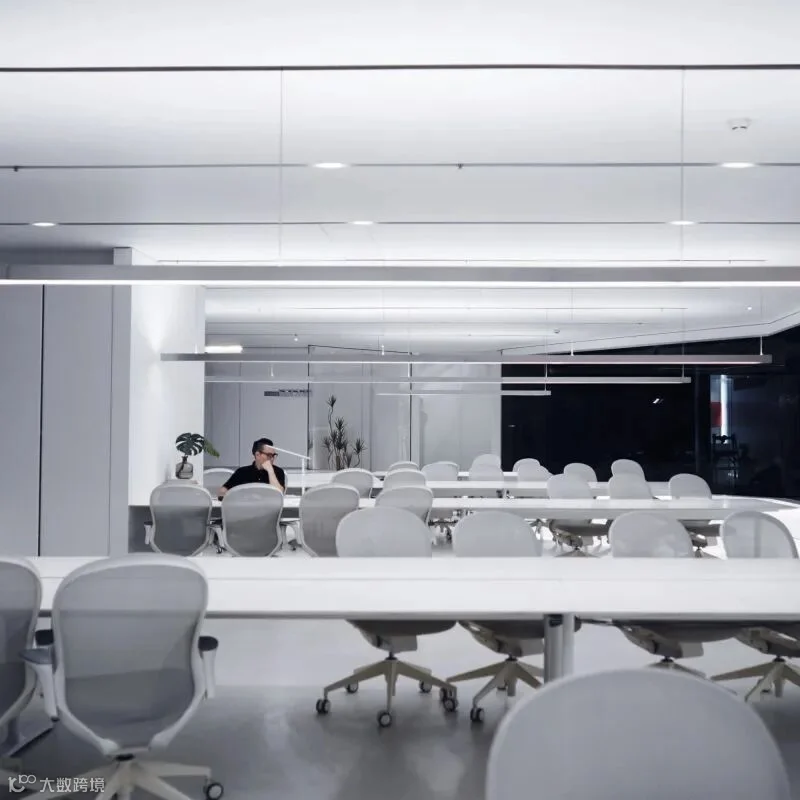 极简白来自于“天书”——视觉识别系统手册,设计师除了加入“模拟阳光的绿植”外,还有让空间“动”了起来。