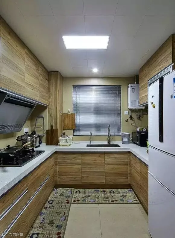 木质纹理的橱柜与整体风格一致,充满童趣的地毯让整个厨房显得更加活泼
