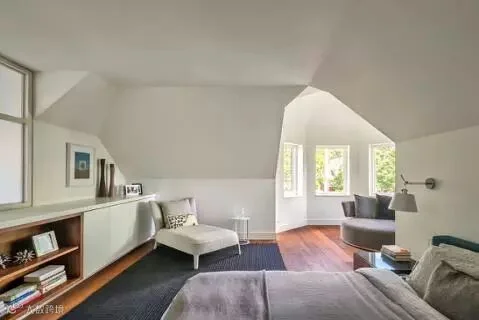 不规则的卧室场域里,多出一个阳台,睡觉区与休闲区的联系,多么惬意?地柜既可储物也可存书,床头柜堆摞着的几本书也标明主人的日子习惯。
