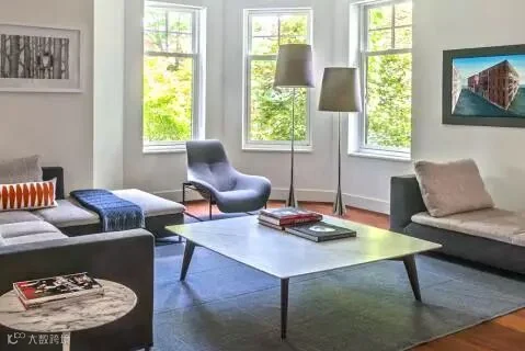 窗外的绿色与客厅融为一体,灰、白在空间里挥洒,质感与纯净偶遇,只想躺在软软的沙发上睡上那么一瞬间,醒来,翻几页书,这才是日子。
