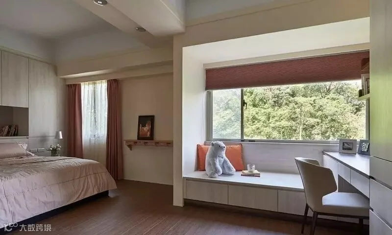 女孩房的整体色调则较为明亮清新,藉由粉色系的软件点缀,衬托少女的烂漫情怀。