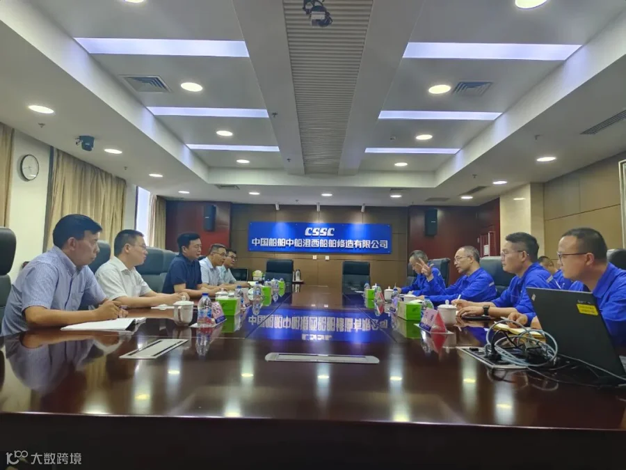 中船九江装备6月27日至28日,中国船舶集团有限公司旗下中船九江海洋装备(集团)有限公司党委书记、董事长程柏林带队前往江苏地区相关单位开展走访交流活动,与中国船舶第八研究院、中船澄西船舶修造有限公司两家单位主要负责人围绕共同服务集团公司战略,进一步加强交流合作,共同推动创新引领及产业发展进行了深入交流并达成共识。中船九江公司副总经理孙纲文陪同走访。