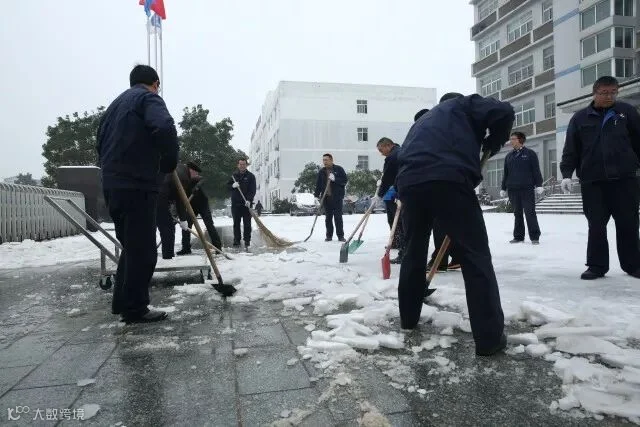 中船九江工业有限公司本部与九江中船消防设备有限公司职工联合组建扫雪队伍,大家积极行动,不畏严寒,清除公司门前积雪,同时在主要通道和易滑路段铺设草垫,确保职工出行安全。 (孔玲)
