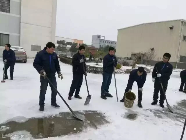 九江海天设备制造有限公司干部职工在公司领导的带领下,组建扫雪队伍,积极行动起来。纷纷扛起铁撬、拿着扫帚清扫清除厂内路面上的积雪。大家不畏严寒,积极主动,齐心协力,你铲我扫,有条不紊的清理路面厚厚的冰雪,整个队伍呈现出了一片热火朝天的景象。经过两个多小时的辛勤劳动,公司厂区主要干道积雪基本清理干净,确保了职工出行安全。 (徐遥)
