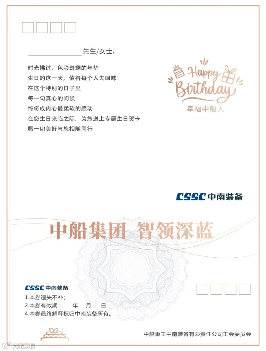 会议强调了员工是公司发展的核心力量,关爱员工、保障员工权益是工会工作的重中之重。此次启动生日祝福卡片发放工作,是公司践行“幸福中船人”理念的具体举措,旨在通过常态化、暖心化的福利关怀,增强员工的归属感、幸福感和凝聚力,激发员工以更饱满的热情投入到工作中,为公司高质量发展贡献力量。
