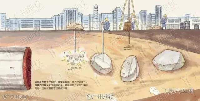 像孤石这种又大又硬的石头,盾构机的“牙齿”啃不动它,这时就要把它挖掉或炸碎。