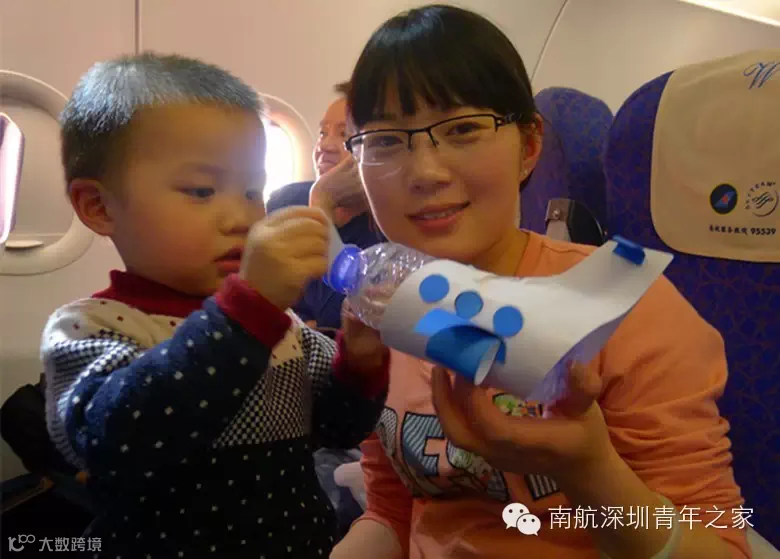 4月16日,为迎接世界地球日,深圳分公司在飞往西安的CZ6333航班上为旅客们精心组织了一次“绿色客舱,安全出行”的机上主题活动。旅客们进行垃圾分类贴图、废旧材料小手工。小乐乐拿着矿泉水瓶做的小飞机,对妈妈说“我长大要开南航的旅客飞机。”