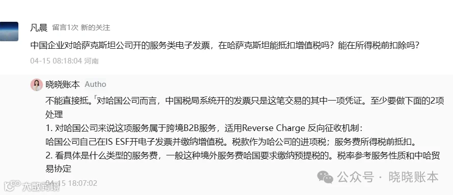 中国税务局开具的电子发票,本身不能直接作为哈萨克斯坦的增值税抵扣凭证。 -