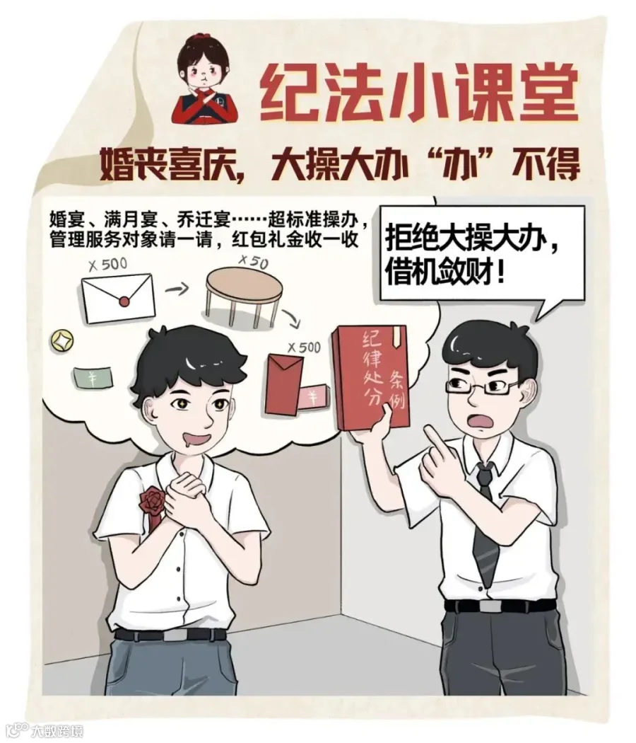 婚丧喜庆应尚俭戒奢,禁止大操大办或借机敛财,明界限守底线。