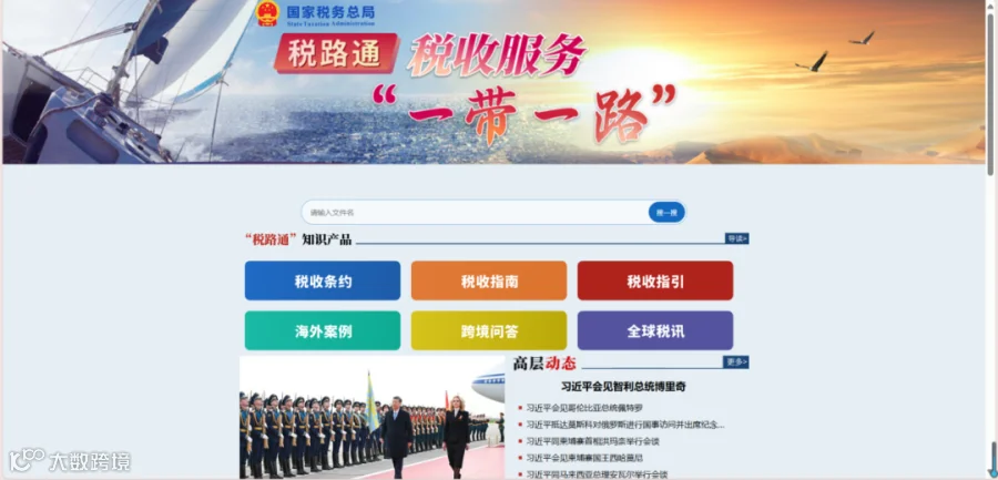 1. 访问国家税务总局官网,滚动页面至底部,进入"税收服务‘一带一路’专题"。
