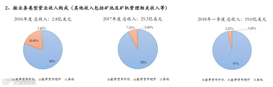 2017年比特大陆超过90%销售收入来自数字货币矿机的销售,而在2018年,虽然需求依然旺盛,但或许并不能让其高速增长。