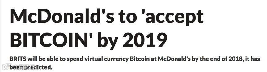 而福布斯的报道则表示是在2018年底,麦当劳会接受比特币支付。不过这个时间并不是重点,重点是当这些商铺支持数字货币,将会让目前只能数字资产除了炒价格之外,真正地流通。